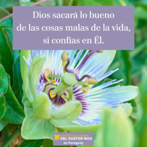 Romanos 8:28 dice, “Y sabemos que Dios hace que todas las cosas cooperen para el bien de quienes lo aman y son llamados según el propósito que él tiene para ellos” (NTV).