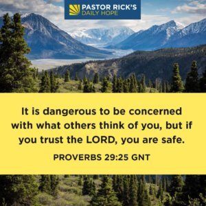 The Bible says in Proverbs 29:25, “It is dangerous to be concerned with what others think of you, but if you trust the LORD, you are safe” (GNT).