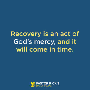 But there is no shortcut to grieving and recovering from failure. The greater the failure in your life, the more time it’s going to take to heal. Let God work in your heart. You can’t force healing. Recovery is an act of God’s mercy, and it will come in time.