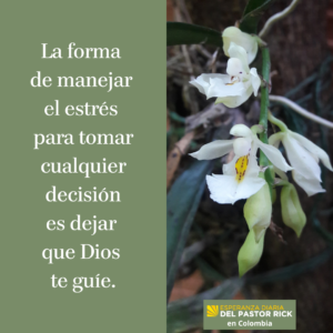 A veces tenemos miedo de tomar la decisión equivocada. Y eso nos genera estrés. Pero Dios tiene un antídoto para la indecisión. El Salmo 23:3 dice: “Él renueva mis fuerzas. Me guía por sendas correctas, y así da honra a su nombre” (NTV). La forma de manejar el estrés para tomar cualquier decisión es dejar que Dios te guíe.