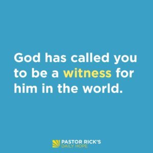 God has called you to be a witness for him in the world. He expects you to tell others about the hope you have in Jesus.