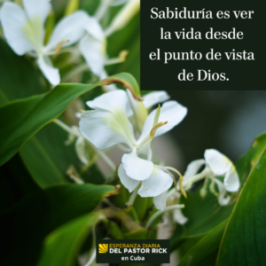 Pero Dios ha prometido darte sabiduría, si la pides. Sabiduría es ver la vida desde el punto de vista de Dios. Sabiduría es la capacidad de tomar decisiones de la misma manera que Dios las toma.