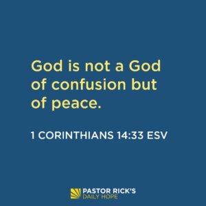 But sharing your hope in Christ helps bring clarity to their lives. It gives them the understanding they need. The Bible says in 1 Corinthians 14:33, “God is not a God of confusion but of peace” (ESV). The truth of God’s Word sets people free from contradiction, confusion, and everything else that binds up their lives.