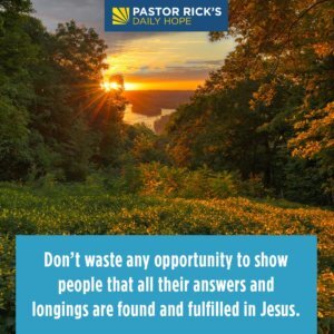 Whatever the reason, don’t waste any opportunity to show people that all their answers and longings are found and fulfilled in Jesus.