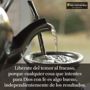 Libérate del temor al fracaso, porque cualquier cosa que intentes para Dios con fe es algo bueno, independientemente de los resultados.