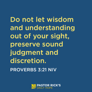 Proverbs 3:21 says, ” Do not let wisdom and understanding out of your sight, preserve sound judgment and discretion” (NIV).