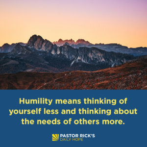 Humility means thinking of yourself less and thinking more about the needs of others. It means you meet people on their own terms; you don’t think you know it all. When you practice humility, you start seeing people as God created them: in his image, with great worth.