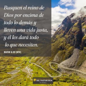 “Busquen el reino de Dios por encima de todo lo demás y lleven una vida justa, y él les dará todo lo que necesiten”. Mateo 6:33 (NTV)
