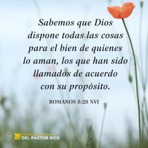 Romanos 8:28 dice, “Sabemos que Dios dispone todas las cosas para el bien de quienes lo aman, los que han sido llamados de acuerdo con su propósito” (NVI).