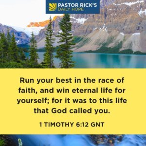 The Bible says, “Run your best in the race of faith, and win eternal life for yourself; for it was to this life that God called you” (1 Timothy 6:12 GNT). God has called you to a specific task, and it can only be accomplished when you give it the best of your time, effort, gifts, and focus.