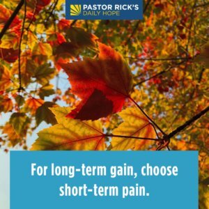 The post For Long-term Gain, Choose Short-term Pain appeared first on Pastor Rick's Daily Hope.