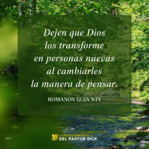 “Dejen que Dios los transforme en personas nuevas al cambiarles la manera de pensar”. Romanos 12:2a (NTV)