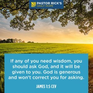 James 1:5 says, “If any of you need wisdom, you should ask God, and it will be given to you. God is generous and won’t correct you for asking” (CEV). God wants you to ask him for advice, and he wants you to be specific. He’s waiting for you to ask!