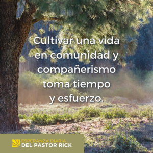 “Cultivar una vida en comunidad y compañerismo” toma tiempo y esfuerzo. Como un jardín requiere ser cultivado para dar fruto, tus esfuerzos cosecharán el fruto de la felicidad y de relaciones más fuertes.