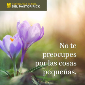 ¿De qué te quejas constantemente en tu vida? ¿Considerarías estas cosas como “cosas pequeñas”? ¿Por qué o por qué no?¿De qué manera las “palabras ociosas” (Mateo 12:36) reflejan un enfoque en las cosas pequeñas de la vida?¿Cómo crees que quejarse hace que algo que es difícil parezca aún peor?Si todavía no has confiado en Jesús y no te has comprometido a seguirlo, ¿por qué esperar más? Si estás listo para cruzar esa línea y tomar la decisión de creer en Jesucristo y seguirlo, haz esta oración . .fb-background-color { background: #ffffff !important; } .fb_iframe_widget_fluid_desktop iframe { width: 100% !important; }The post No te Preocupes por las Cosas Pequeñas appeared first on Pastor Rick's Daily Hope.