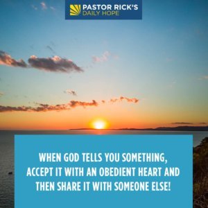 When God tells you something, accept it with an obedient heart and then share it with someone else!