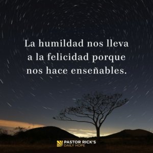 La Felicidad y la humildad van juntas porque las personas humildes son enseñables. Ellas siempre están preguntando “¿Cómo puedo ser un mejor esposo? ¿Cómo puedo ser un mejor amigo? ¿Cómo puedo ser un mejor jefe? ¿Cómo puedo ser un mejor seguidor de Jesús?”
