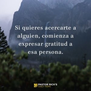 Si quieres estar más cerca de alguien, comienza expresando tu gratitud a esa persona. Si te sientes distante de tu esposa, necesitas comenzar a hacer lo que hacías cuando eran novios: expresa gratitud. Escribe notas cortas amables y de ánimo. Haz llamadas o envía textos durante el día, solo para decirle a tu pareja que estás agradecido. La razón por la que has perdido esos sentimientos de amor es porque dejaste de hacer las cosas que crearon esos sentimientos al principio, y caemos en la rutina.
