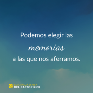 ¿Por qué a veces es más fácil aferrarse a recuerdos dolorosos que reemplazarlos por buenos recuerdos?¿De qué maneras el enfocarse en buenos recuerdos cambia tus expectativas para el futuro?¿Cómo puedes expresar gratitud por las personas que Dios ha puesto en tu vida? Sé lo más específico posible.Si todavía no has confiado en Jesús y no te has comprometido a seguirlo, ¿por qué esperar más? Si estás listo para cruzar esa línea y tomar la decisión de creer en Jesucristo y seguirlo, haz esta oración .The post Concéntrate en los Buenos Tiempos appeared first on Pastor Rick's Daily Hope.