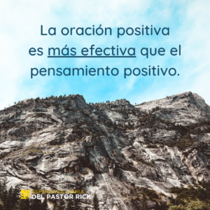La oración positiva es más efectiva que el pensamiento positivo. Todo el pensamiento positivo del mundo no va a cambiar a tu cónyuge, hijo, amigo o situación. El pensamiento positivo puede cambiarte, pero no cambiará a nadie más. Pero la oración positiva puede marcar la diferencia en otra persona.