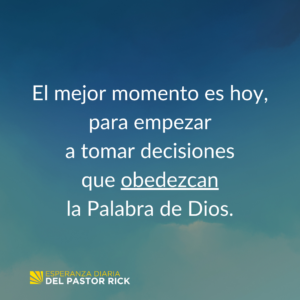 No hay mejor momento que hoy para comenzar a tomar decisiones en obediencia a la Palabra de Dios. Cuando vives de una manera que honra a Dios, encontrarás que a eso le siguen grandes bendiciones.