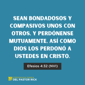 “Más bien, sean bondadosos y compasivos unos con otros, y perdónense mutuamente, así como Dios los perdonó a ustedes en Cristo”. Efesios 4:32 (NVI)