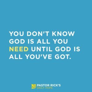 I’ve had a lot of pain in my life. And, in fact, almost everything I’ve learned in life, I’ve learned through pain. That’s because God is more interested in making me a man of character than he is in making me comfortable. God is more interested in making you a man or woman of character than he is in making you comfortable. If you never had any pain or difficulty in your life, you would never grow to maturity. You don’t know God is all you need until God is all you’ve got.
