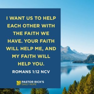 The Bible says, “I want us to help each other with the faith we have. Your faith will help me, and my faith will help you” (Romans 1:12 NCV).