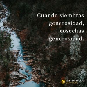 Hay una ley universal llamada principio de la siembra y de la cosecha. Si siembro críticas, voy a cosechar críticas. Si siembro generosidad, regresará a mí, y voy a cosechar generosidad.