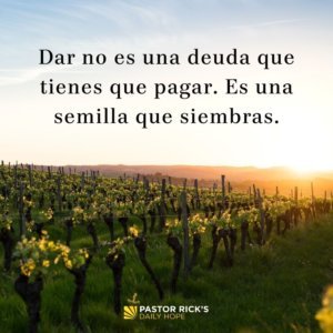 Necesitas esperar que Dios multiplique tu semilla. Dar no es una deuda que tienes. Es una semilla que siembras. Y cuando dejes ir lo que Dios ya ha puesto en tus manos (porque Él lo ha puesto ahí en primer lugar), Dios lo reemplazará con mucho más.