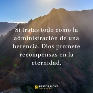 Además del dinero, ¿Que te ha confiado Dios que Él quiere que administres responsablemente?¿De qué manera trabajas diariamente para fielmente administrar esas responsabilidades? ¿Cómo puedes continuar creciendo en esas áreas?¿Has pensado alguna vez sobre tener responsabilidades en el cielo? ¿Por qué buscarías más responsabilidades en la eternidad?Te invitamos a ESCUCHAR el mensaje de hoy en NUESTRA NUEVA PAGINA WEB .The post Trata Tus Tesoros como un Fideicomiso appeared first on Pastor Rick's Daily Hope.
