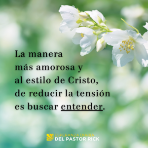 Cuando estás en conflicto, la forma cristiana y amorosa de desactivar la tensión es buscar entender antes de buscar que te entiendan. Intenta averiguar lo que la otra persona está pensando y diciendo antes de que comiences a intentar convencerlo de tu punto de vista.