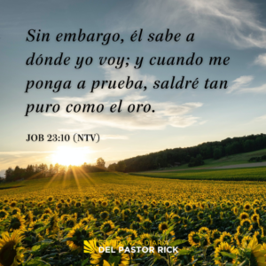 “ Él, [Dios] en cambio, conoce mis caminos; si me pusiera a prueba, saldría yo puro como el oro”. Job 23:10 (NVI)