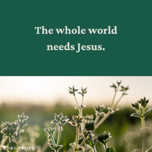 What does it mean for you? If the whole world needs Jesus, then you must share the Good News. If you knew the cure for Alzheimer’s, AIDS, or cancer, it would be inexcusable to not share it.