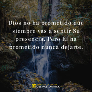Sin embargo, Dios no te ha prometido que siempre sentirás Su presencia. De hecho, Dios admite que a veces se esconde de nosotros (ver Isaías 45:15).