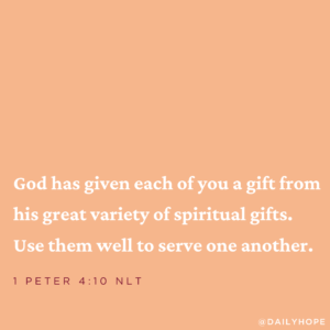 The Bible says, “God has given each of you a gift from his great variety of spiritual gifts. Use them well to serve one another” (1 Peter 4:10 NLT).