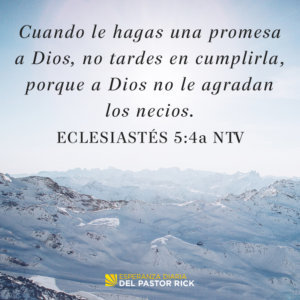 “Cuando le hagas una promesa a Dios, no tardes en cumplirla, porque a Dios no le agradan los necios”. Eclesiastés 5:4a (NTV)