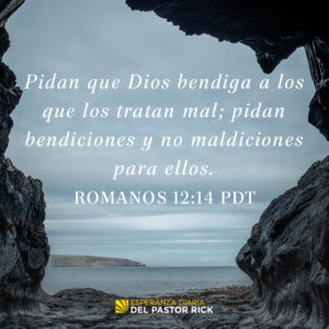 “Bendigan a quienes los persiguen. No los maldigan, sino pídanle a Dios en oración que los bendiga”. Romanos 12:14 (NTV)