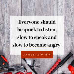 The Bible says, “Everyone should be quick to listen, slow to speak and slow to become angry” (James 1:19 NIV).