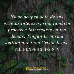 “No se ocupen solo de sus propios intereses, sino también procuren interesarse en los demás. Tengan la misma actitud que tuvo Cristo Jesús”. Filipenses 2:4-5 (NTV)