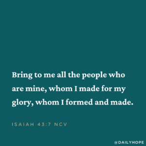 “Bring to me all the people who are mine, whom I made for my glory, whom I formed and made.”