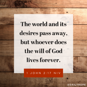 But the Bible says something different: “The world and its desires pass away, but whoever does the will of God lives forever” (1 John 2:17 NIV).