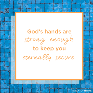 God’s hands are strong enough to keep you eternally secure. John 10:28-29 says, “I give them eternal life, and they shall never perish . . . My Father, who has given them to me, is greater than all; no one can snatch them out of my Father’s hand” (NIV).