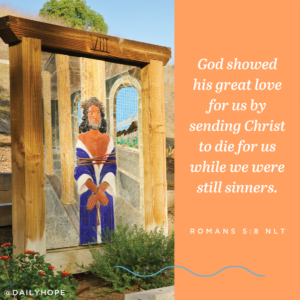 “God showed his great love for us by sending Christ to die for us while we were still sinners.”