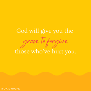 Because you’ve been forgiven by God, he expects you to forgive other people. He will help you work through your hurt and give you the grace to forgive those who’ve hurt you.