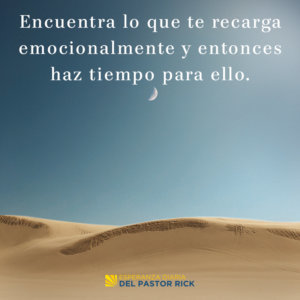 ¿Qué señales en tu vida dicen que necesitas ser recargado emocionalmente?¿Cómo te recarga emocionalmente tu actividad favorita? ¿Has separado tiempo en tu agenda para esa actividad?¿Qué necesitas cambiar en tu agenda y en tus prioridades para que puedas pasar un tiempo a solas con Dios?The post La Salud Emocional nos Dirige a Relaciones Saludables appeared first on Pastor Rick's Daily Hope.