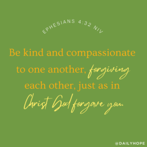 The Bible says in Ephesians 4:32, “Be kind and compassionate to one another, forgiving each other, just as in Christ God forgave you” (NIV).