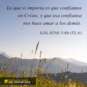 “Lo que sí importa es que confiamos en Cristo, y que esa confianza nos hace amar a los demás”. Gálatas 5:6 (TLA)