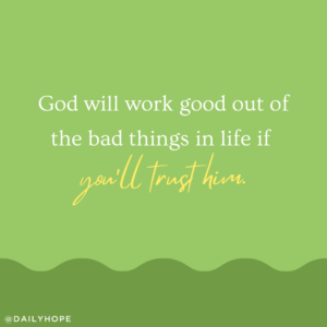 But God says he will work good out of the bad things in life if you will trust him. You can go to him and say, “God, I give you all the pieces of my life.”