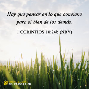 “No se preocupen por su propio bien, sino por el bien de los demás”. 1 Corintios 10:24 (NTV)